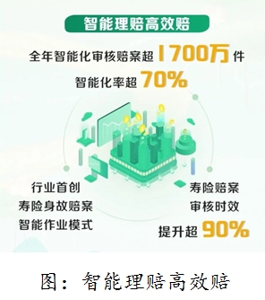 2024年全年,该公司智能化审核赔案超1700万件,智能化率超70%。行业首创寿险身故赔案智能作业模式,符合条件的寿险赔案审核时效提升超90%。