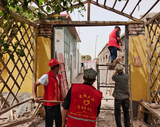 阿克陶县玉麦镇霍伊拉艾日克村驻村工作队队员帮助村民维修房门