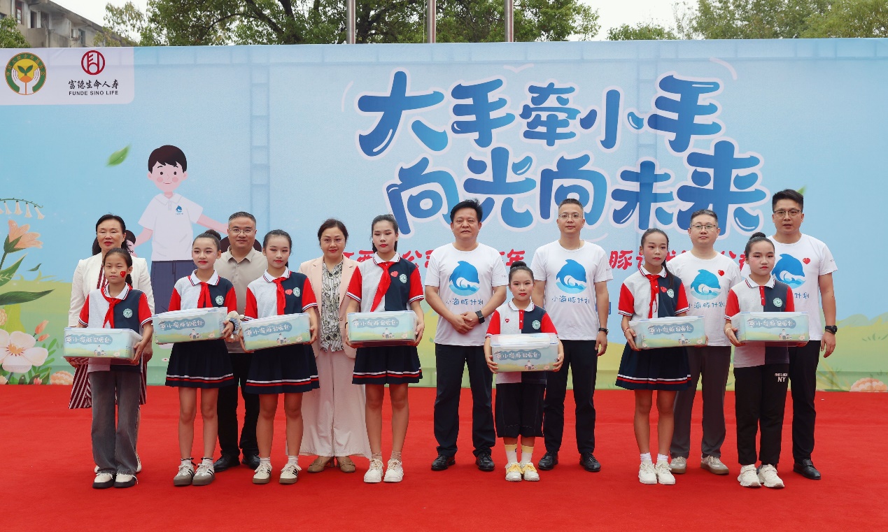 活动中,富德生命人寿江西分公司与妇联代表共同为学生们送上150份总价值4.5万元的"小海豚温暖包"。温暖包内生活、学习、文体、应急物资等一应俱全,孩子们接过温暖包时绽放的笑颜,成为秋日校园里最温暖的风景。此外,公司还为150位留守儿童提供总保额847.5万元的专属保险保障,为他们的健康成长筑牢"安全屏障"。